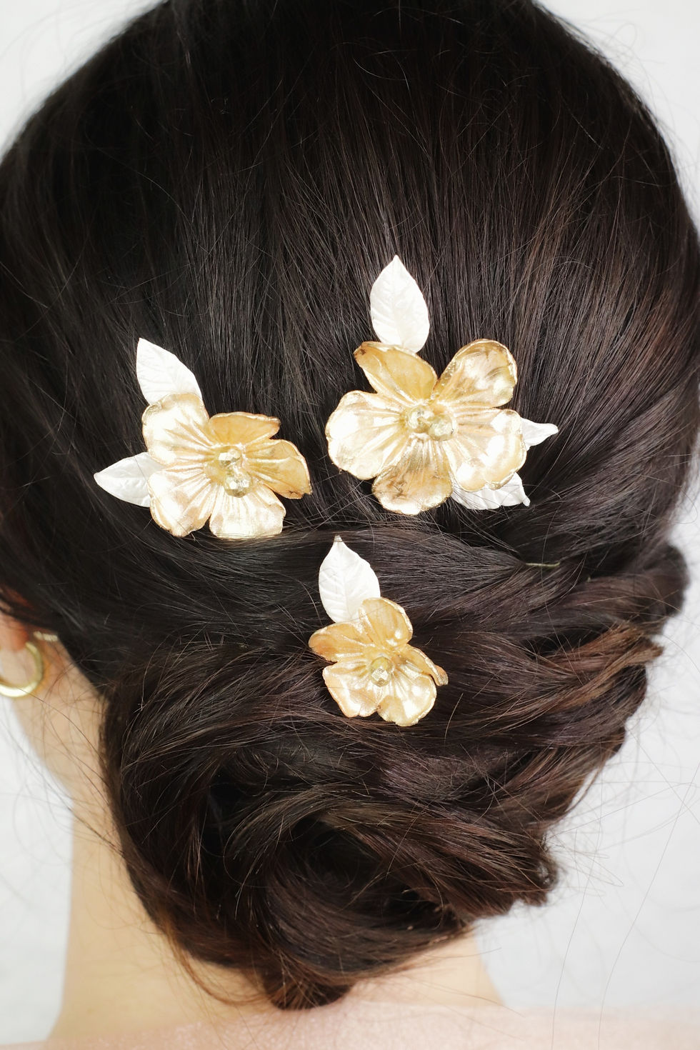 Trío flores porcelana 3 tamaños dorada