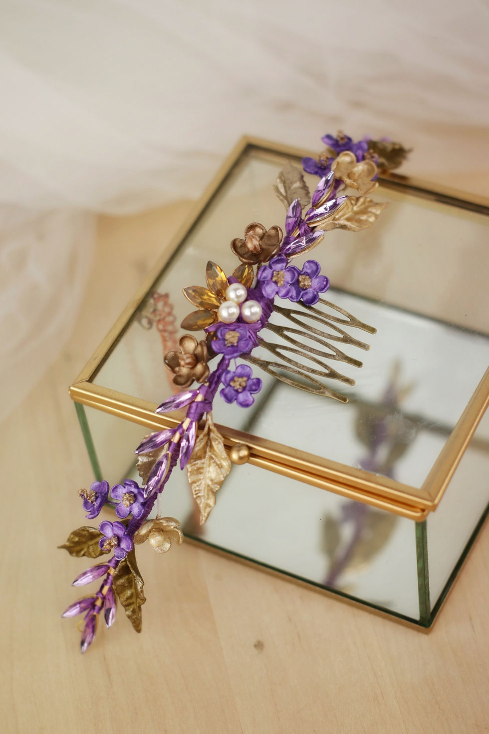 Peineta aplique y hojas de cristal
