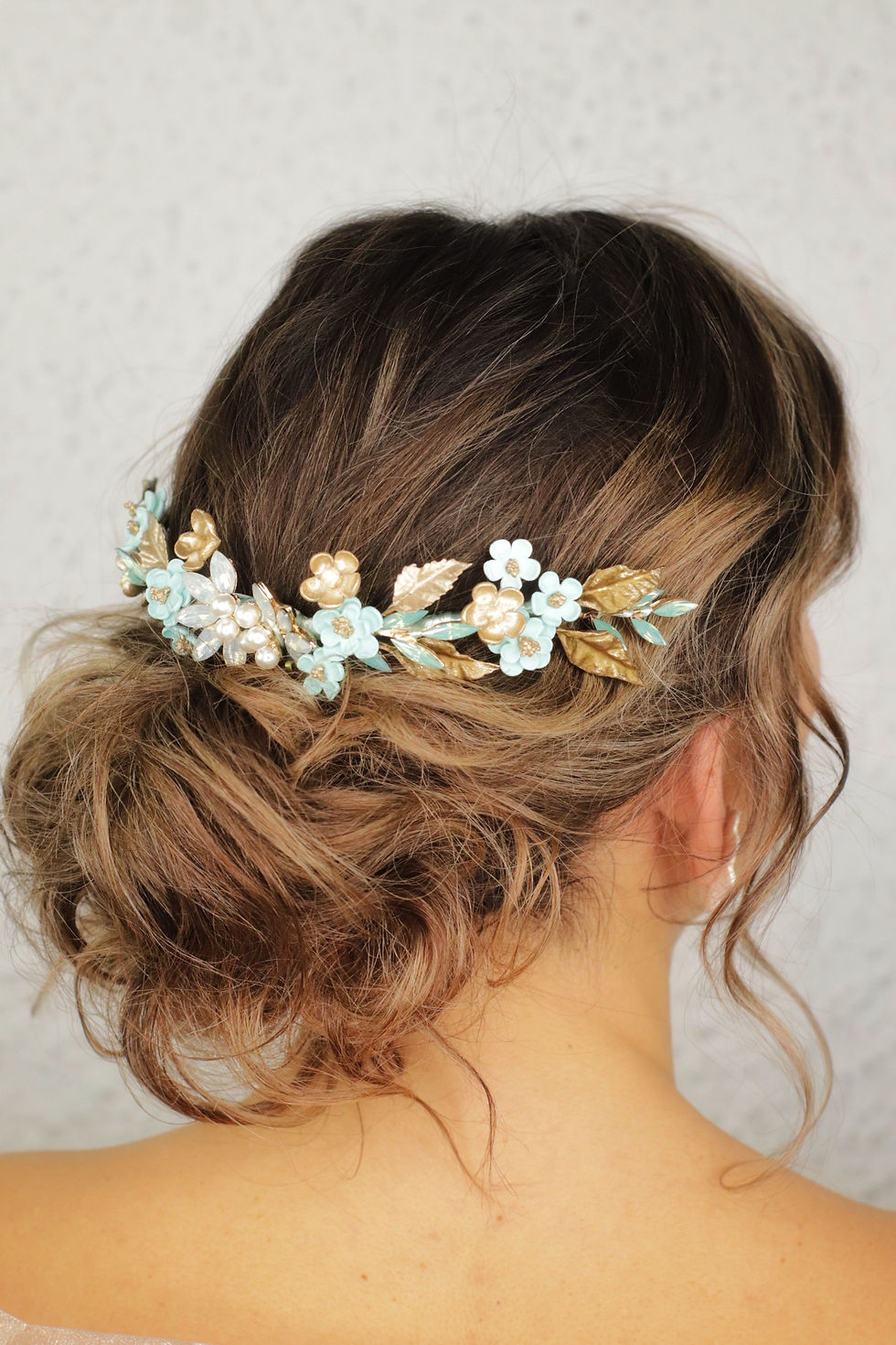 Peineta porcelana y cristal turquesa y dorado